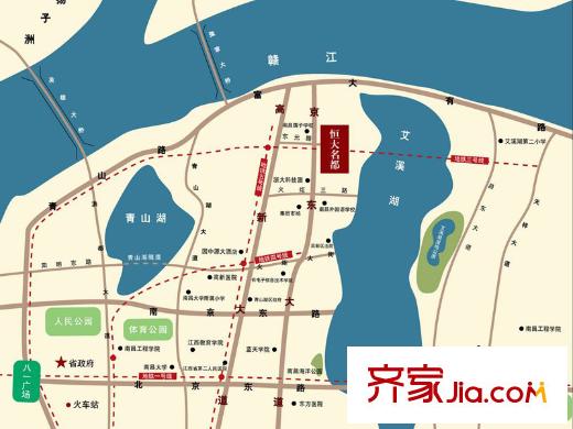 南昌恒大名都配套图周边向东约1000米艾溪湖湿地公园
