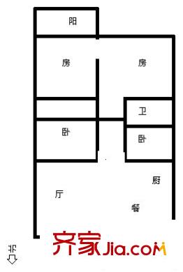 洪城路商业宿舍 2室 户型图