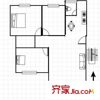 会堂侧路烟草公司户型图会堂侧路省烟草公司宿舍 2室 户型图 2室1厅1卫1厨
