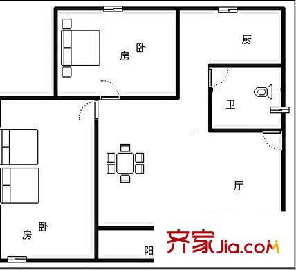 广场南路交警宿舍 2室 户型图