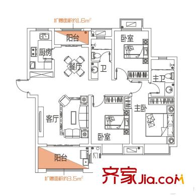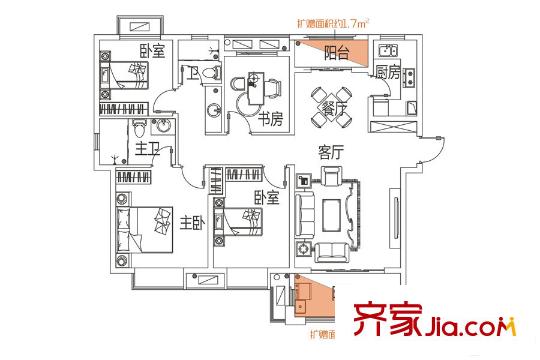 联发君悦华庭2#、3#、7#、8#、9#端户A1户型图 4室2厅2卫1厨