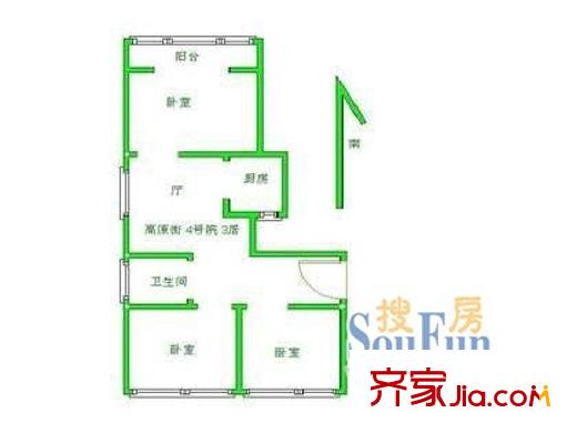 北京东路乡镇企业局宿舍户型图北京东路乡镇企业局 2室 户型图 2室1厅1卫1厨