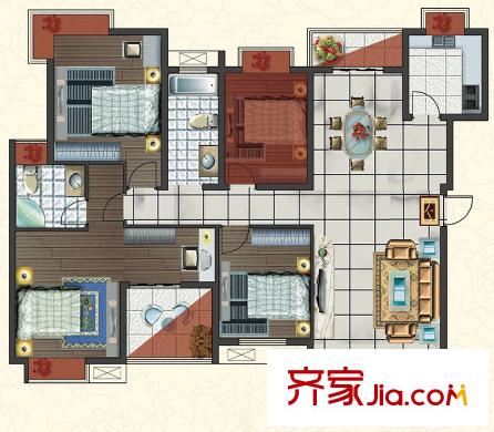 金桂尚居户型图一期小高层D户型 4室2厅2卫1厨