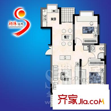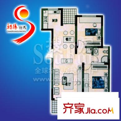 朝阳岭秀户型图户型之一(一期售完) 2室2厅1卫1厨
