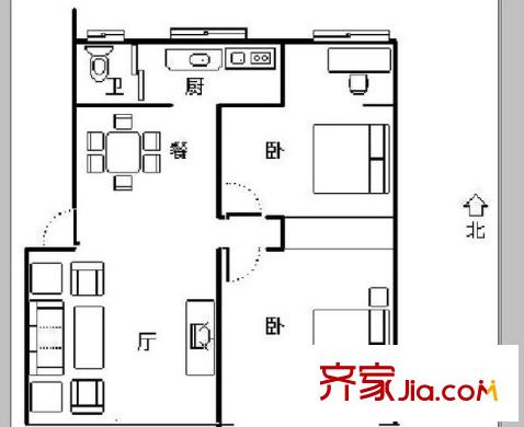 中山桥地税局宿舍 2室 户型图