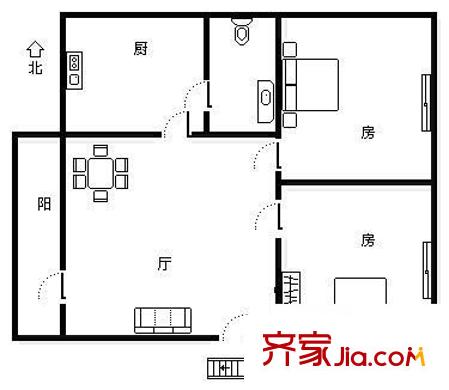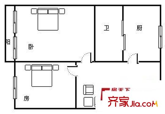 将军渡 2室 户型图