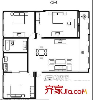 李家巷 三居室户型图