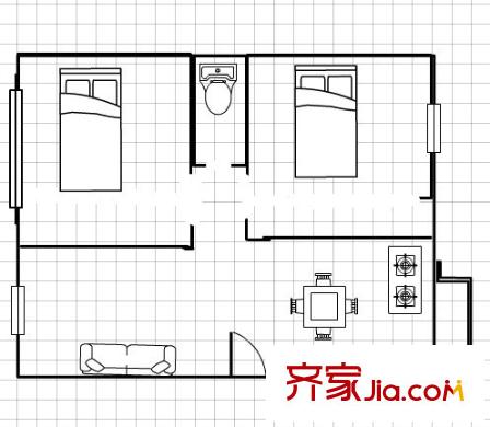 解放西路公交公司宿舍户型图两房 2室1厅1卫1厨