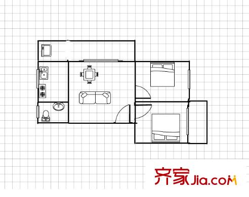 解放西路公交公司宿舍户型图001 2室1厅1卫1厨