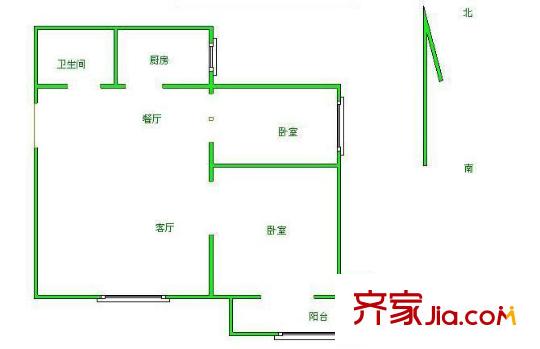 广场南路 2室 户型图