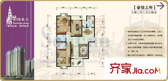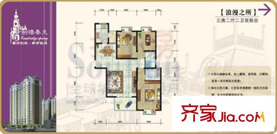 剑桥春天户型图豪情之所 3室2厅2卫1厨