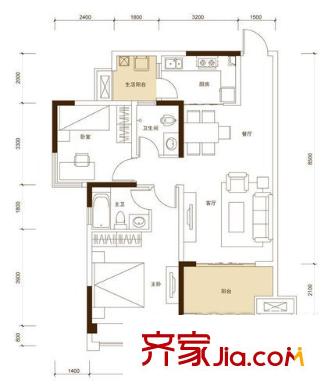 迎宾大道印钞厂旁馨园明珠 2室 户型图