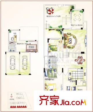 毕加索花园户型图B1户型 3室2厅2卫1厨