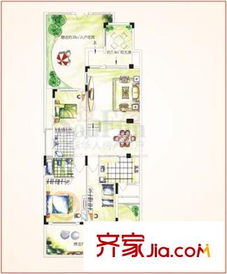 毕加索花园户型图B1-1户型 3室2厅2卫1厨