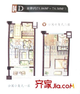 恒茂森林海户型图D户型(复式) 1室2厅2卫1厨