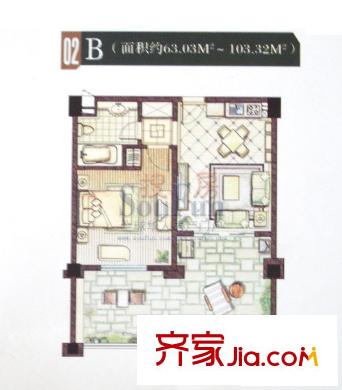 恒茂森林海户型图B户型 1室2厅1卫1厨