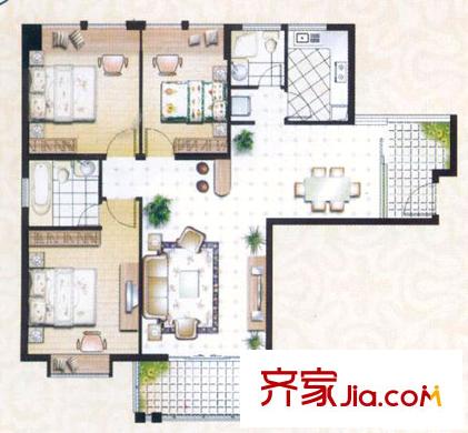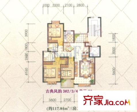 高氏音乐花园户型图高层3#楼C2户型 3室2厅2卫1厨