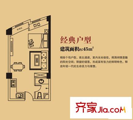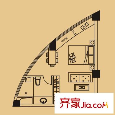 华林桃源丰景户型图壹号公馆经典户型 1室1卫