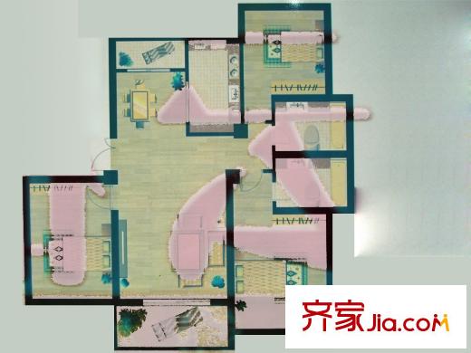 九洲依云郡户型图多层三房两厅两卫 3室2厅2卫1厨