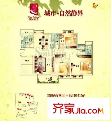 景河星宫户型图三房 3室2厅2卫1厨
