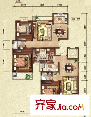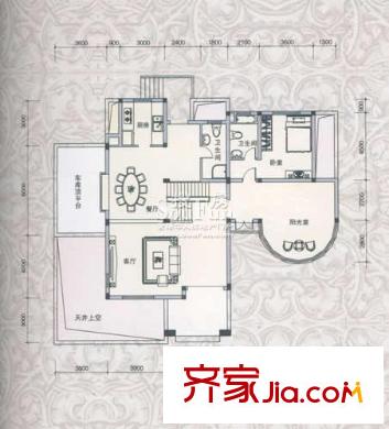 中大青山湖花园户型图D5户型 地上299.94平米 地上一层 2室2厅2卫1厨