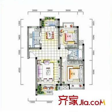 银河城A区二期多层B户型 2室2厅1卫1厨