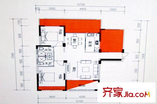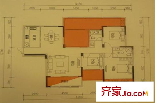 梅湾文化大苑B户型 3室2厅2卫1厨
