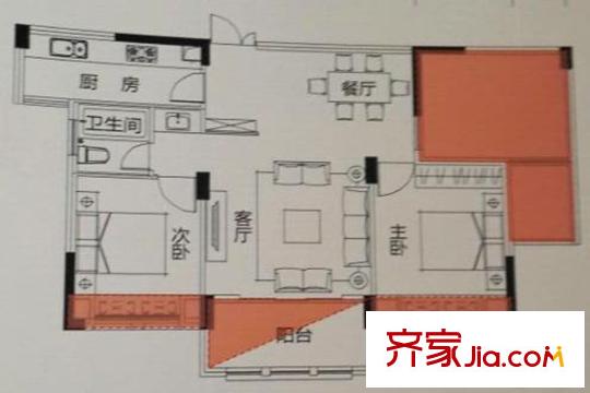 梅湾文化大苑C户型 3室2厅1卫1厨