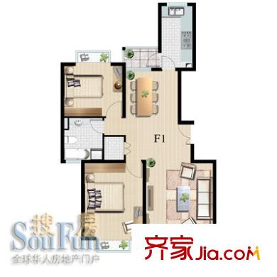 嘉杰国际广场户型图F1户型 2室2厅1卫1厨