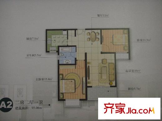 中梅苑二期92.00㎡房型: 二房; 面积段: 92 -106 平方米; 户型