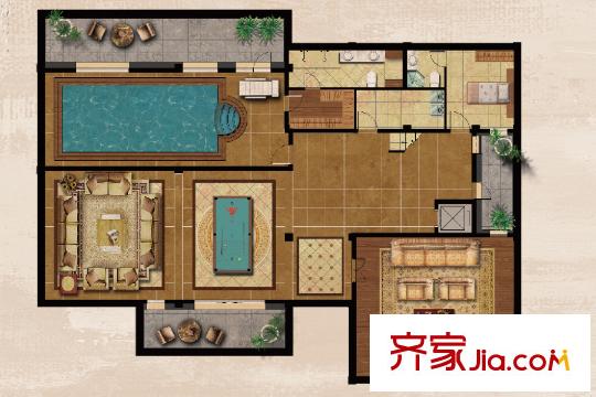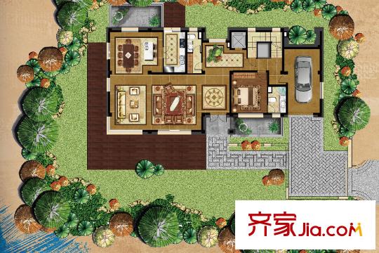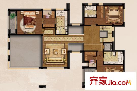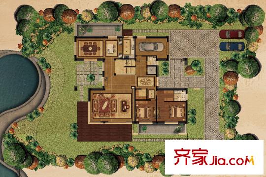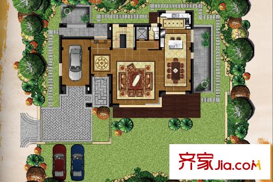 华侨城十号院独栋480平C2户型1层 5室5厅8卫1厨