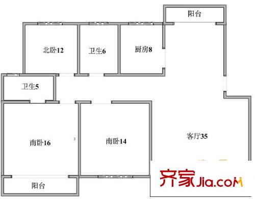 莲浦花苑户型图户型图 4室2厅2卫1厨
