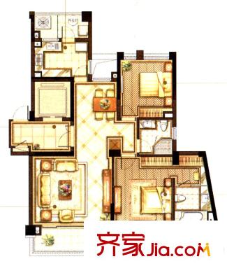 古北大成公馆户型图C3户型 3室2厅2卫1厨