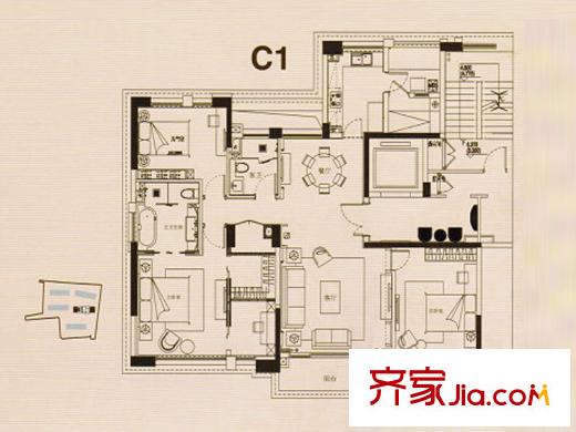 古北大成公馆户型图C1户型 3室2厅2卫1厨