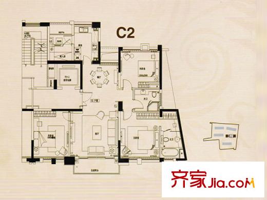 古北大成公馆户型图C2户型 3室2厅2卫1厨