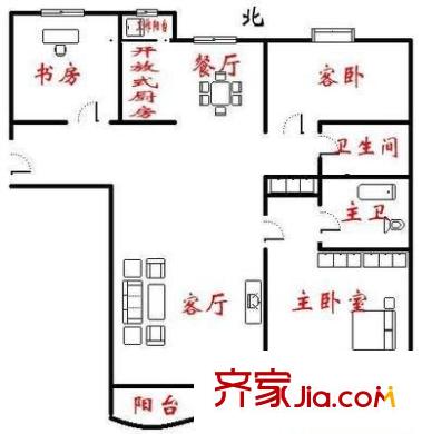 红旗三村户型图户型图 3室2厅2卫1厨