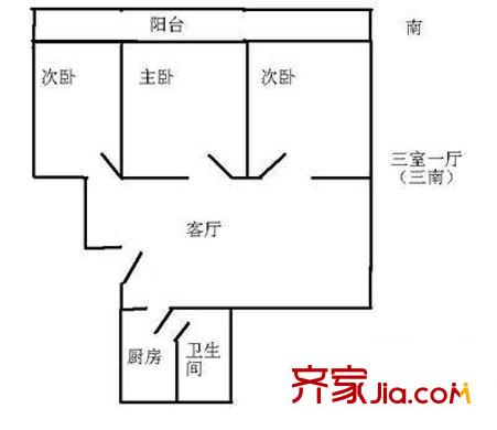 红旗三村户型图户型图 3室1厅1卫1厨
