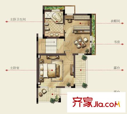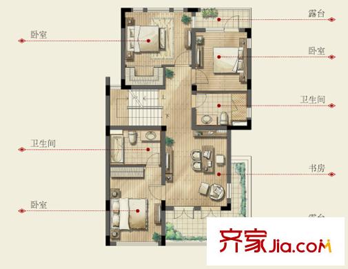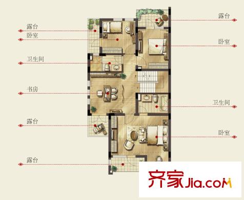 银都名墅D(竹)户型三层 4室2厅3卫1厨