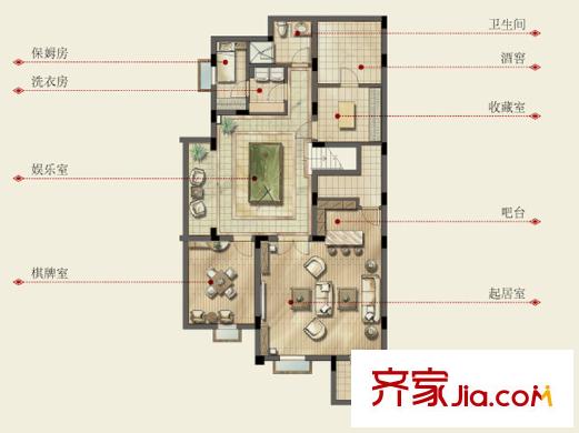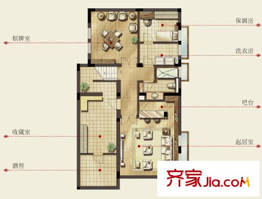 银都名墅B(兰)户型地下一层 4室2厅3卫1厨