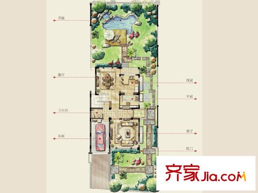 银都名墅E(菊)户型一层 4室2厅3卫1厨