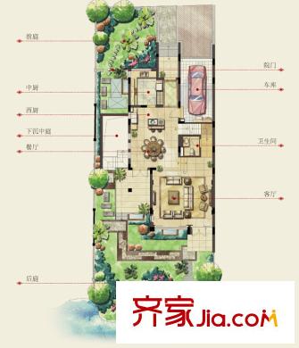 银都名墅B(兰)户型一层 4室2厅3卫1厨