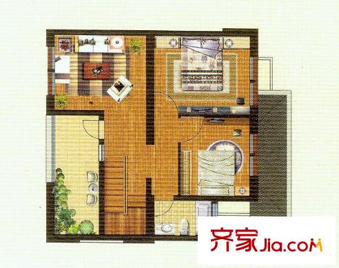 万顺水原墅A户型二层 3室2厅3卫1厨