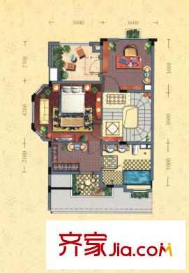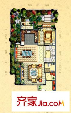 金球怡云花园玫瑰里A2户型一层 5室2厅4卫1厨