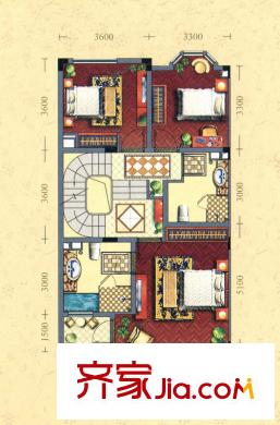 金球怡云花园玫瑰里228.00㎡B1户型二层户型