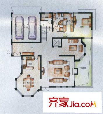 湖山在望花园E户型一层 4室2厅4卫1厨