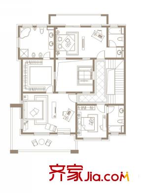 鹏欣一品漫城三期浅山别墅D户型地上二层 4室3厅4卫1厨