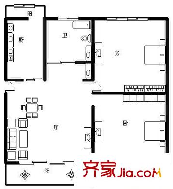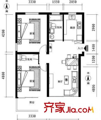 井亭苑户型图 户型图 2室1厅1卫1厨