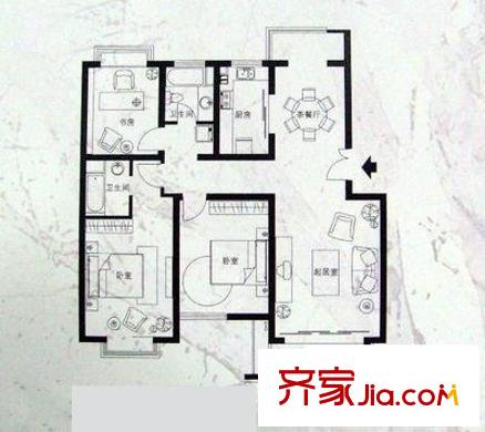 奥森花苑户型图 户型图 3室2厅2卫1厨