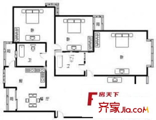 泰极大厦户型图户型图 3室2厅2卫1厨