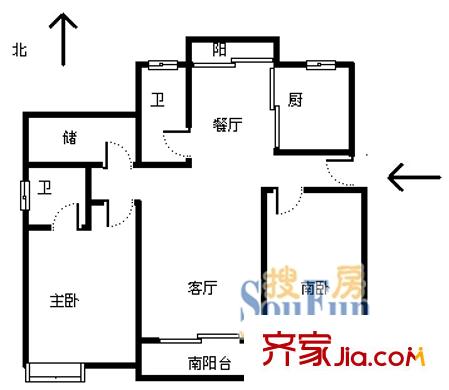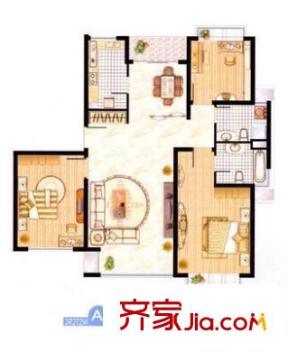 望族新城房型: 三房; 面积段: 126.26 -136.59 平方米; 户型